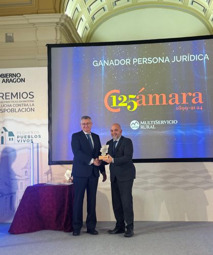 En la gala celebrada hoy en Zaragoza, la Cámara de Comercio de Teruel ha recibido el premio de “Buenas prácticas en materia de lucha contra la despoblación” por su proyecto MultiServicio Rural en la categoría de personas jurídicas y entidades sin personalidad jurídica.
