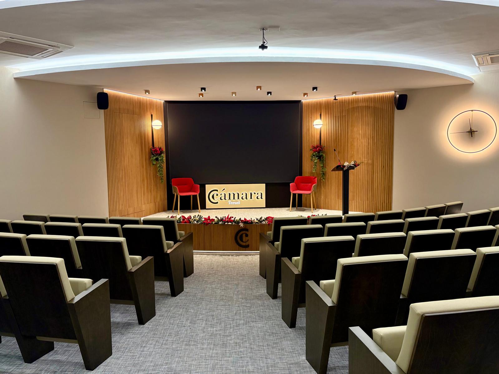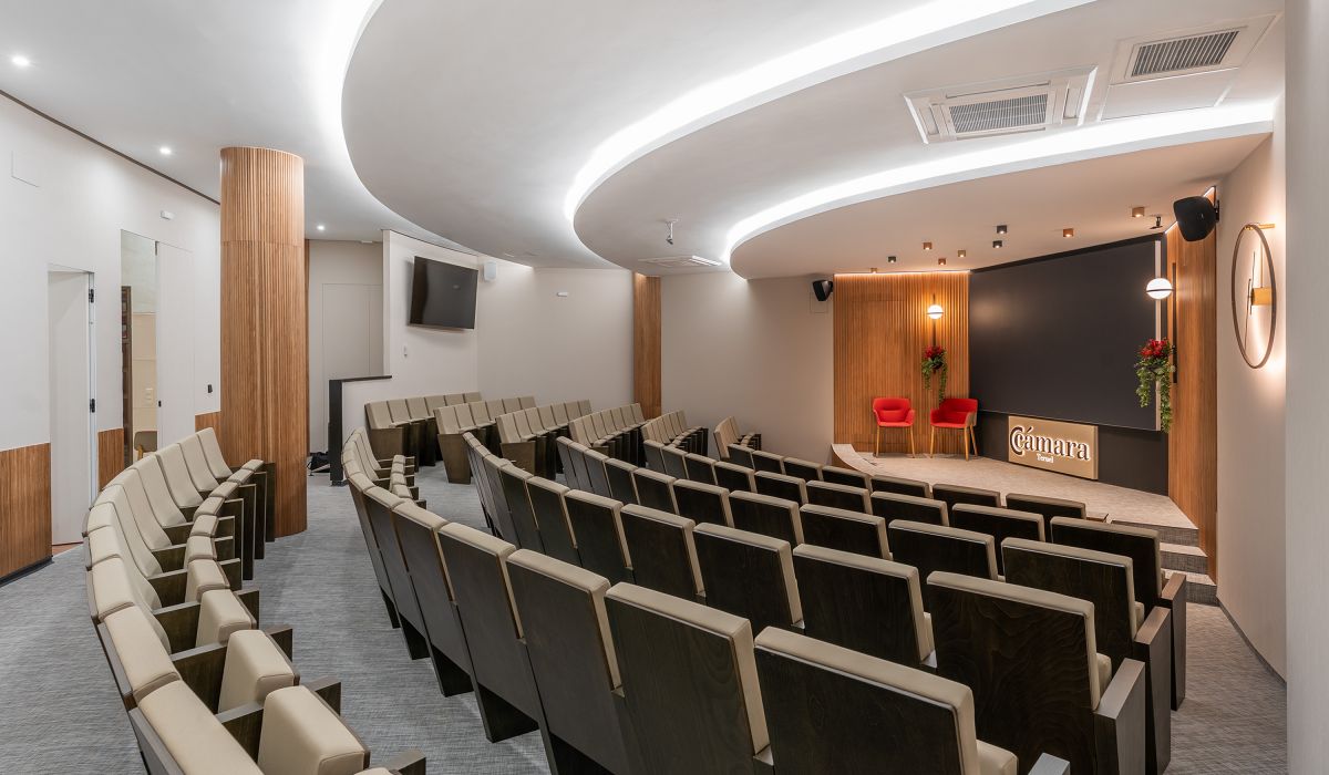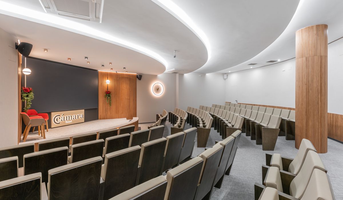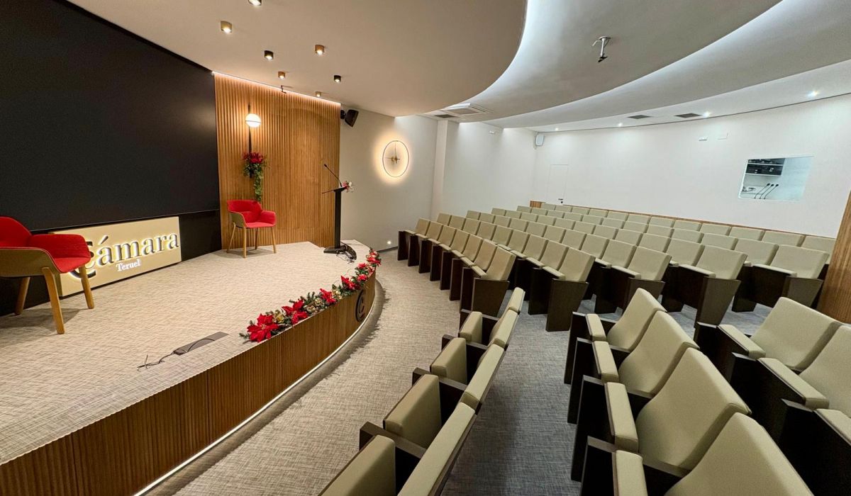 Nuestros salones de actos tienen una capacidad de hasta 99 personas en Teruel y 43 en Alcañiz, así como las salas de reunión de hasta 18 personas. Todos cuentan con el equipamiento necesario, totalmente digitalizado, para el desarrollo de la actividad: sistema WIFI, pantallas de televisión, megafonía y micro de corbata, etc.