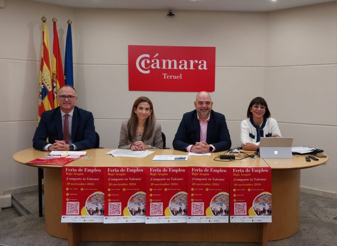 La Cámara de Comercio, Industria y Servicios de Teruel, en colaboración con INAEM, Ayuntamiento de Alcañiz, y Caja Rural de Teruel presentan la celebración de la cuarta edición de la Feria de Empleo Bajo Argón en Alcañiz, que tendrá lugar el próximo 20 de noviembre. Este evento, que se ha consolidado como un referente en la búsqueda de empleo en la comarca, contará con la participación de 26 empresas de diversos sectores incluyendo agricultura, hostelería, construcción, servicios ociales, comercio al por mayor, vehículos de motor, transporte, industria eléctrica, química, agroalimentaria, etc.
