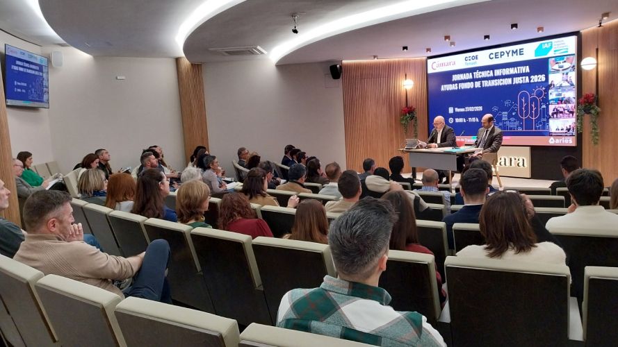 Más de un centenar de empresas de la provincia participaron en la jornada informativa celebrada en la Cámara de Comercio, Industria y Servicios de Teruel sobre las ayudas del Fondo de Transición Justa (FTJ), una convocatoria crucial para el impulso de la inversión y la diversificación económica en el territorio.