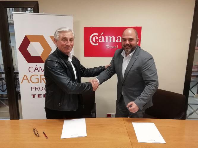 La Cámara de Comercio, Industria y Servicios de Teruel, a través de su Presidente Antonio Santa Isabel y la Cámara Agraria Provincial, a través de su Presidente Leoncio Benedicto, han firmado hoy un convenio de colaboración para trabajar conjuntamente en la promoción de los productos agroalimentarios turolenses.