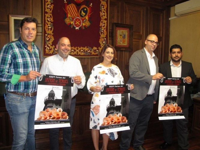 Hoy Ricardo Mosteo ha presentado el programa de la nueva edición de las Ferias del Jamón en el Ayuntamiento de Teruel, junto con la alcaldesa, Emma Buj, el concejal de Fiestas, Javier Domingo, el presidente de la Cámara de Comercio e Industria, Antonio Santa Isabel, y el diputado provincial delegado de Turismo, Diego Piñeiro.