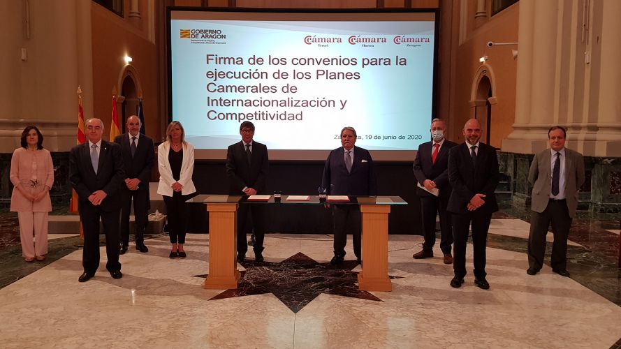 En la Sala de la Corona de la sede del Gobierno de Aragón en Zaragoza, se ha procedido a formalizar la firma de los acuerdos consecuencia de los Planes Camerales de Internacionalización y Competitividad, que permite a las Cámaras trabajar en el apoyo al comercio, a la internacionalización y a los emprendedores.