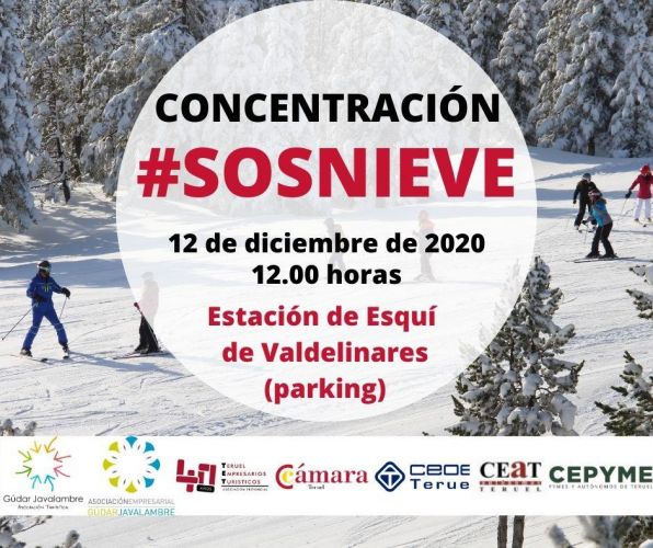 La Asociación Empresarial y la Asociación Turística de Gúdar Javalambre convocan para mañana sábado día 12 a las 12 horas la concentración #SOSNIEVE que tendrá lugar en el aparcamiento general de la Estación de Esquí de Aramón-Valdelinares y que se suma a las iniciativas lanzadas en diferentes localidades del Pirineo para reclamar un plan de apertura segura de las estaciones de esquí aragonesas ajustado a la situación sanitaria, pero que permita el inicio de la actividad como ya plantean otras comunidades autónomas con centros invernales. La concentración está respaldada por la Cámara de Comercio de Teruel, CEOE Teruel y la asociación provincial Teruel Empresarios Turísticos.