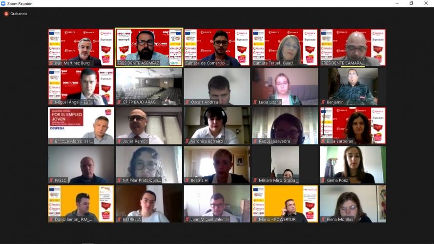 El Encuentro Virtual por el Empleo Joven organizado por la Cámara de Teruel en colaboración con la Asociación de Empresarios del Polígono La Paz (Asempaz) y Caja Rural de Teruel, puso este jueves en contacto a trece empresas del territorio con más de 70 estudiantes en busca de trabajo. El presidente de Asempaz, Alejando Monfort, destacó que existen oportunidades laborales para la juventud turolense, a la que pidió que, además de formarse, afronte su incorporación al tejido empresarial con una actitud activa y positiva.
